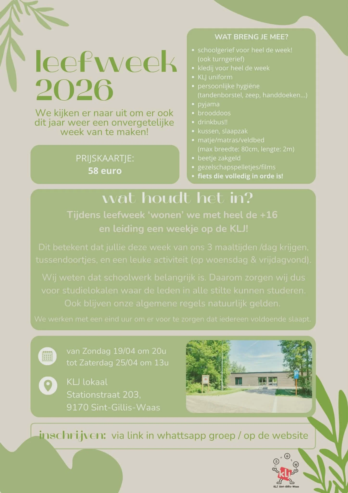 We spreken af bij KLJ-Nieuwkerken vanaf 19u30. De cantus start stipt om 20u, dus zorg dat je op tijd bent!